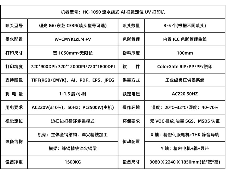 設備型號:HC-1050流水線Ai視覺UV打印機